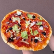 Соус томатний,перець болгарський, гриби, помідор, оливки, кукурудза,цибуля,салат айсберг.